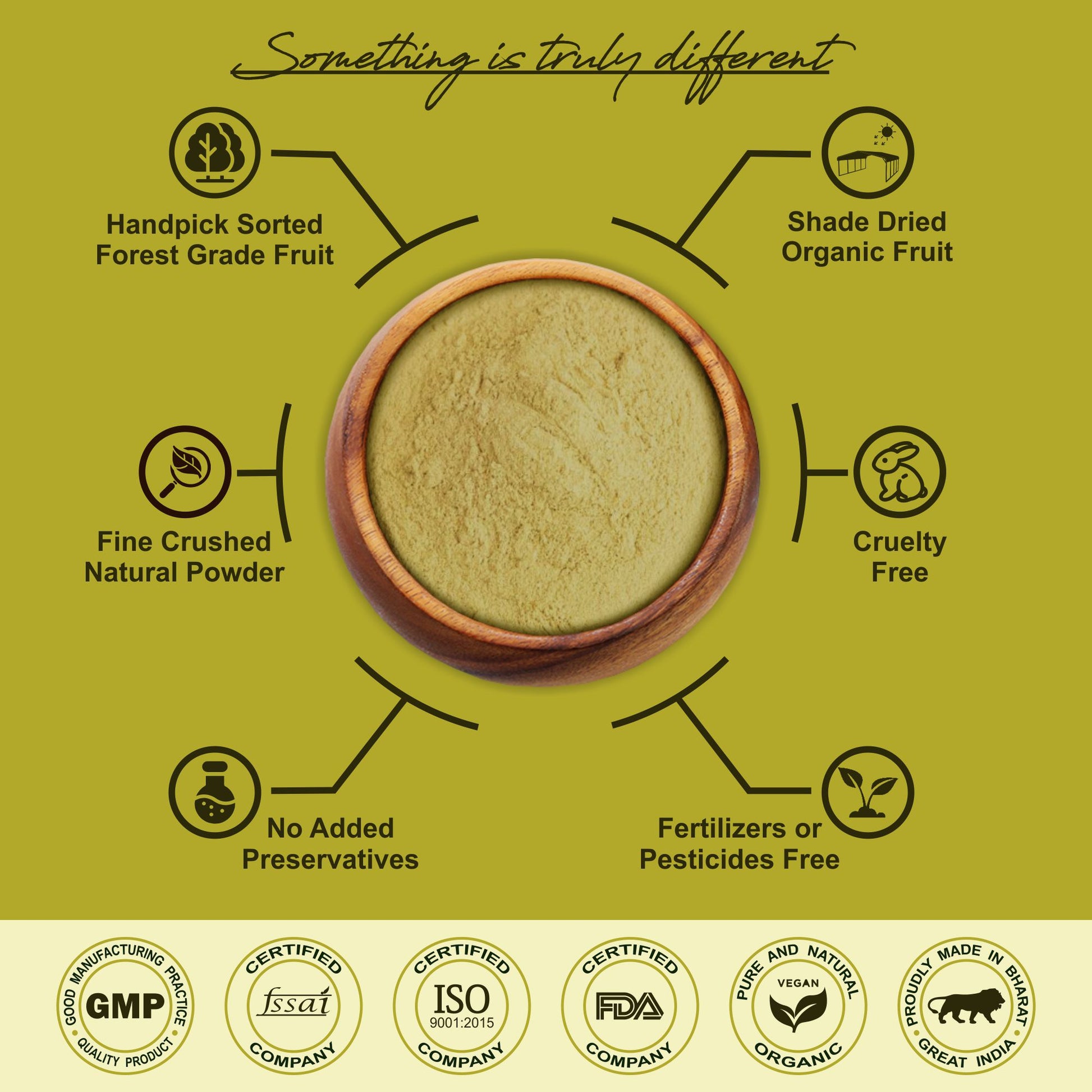 Pure Essence: Our Baheda Fruit Powder is derived from 100% pure and natural Terminalia bellirica fruits, devoid of additives, fillers, or artificial elements, ensuring an authentic and unadulterated product.
